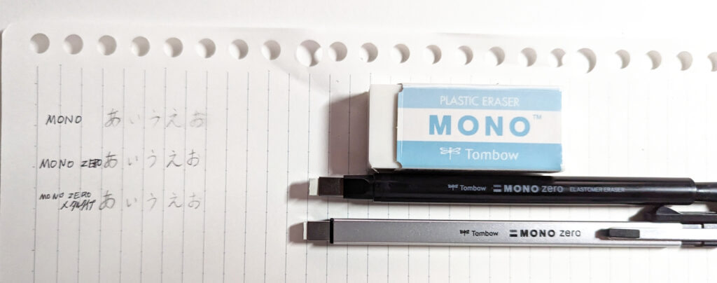 ピンポイント消しゴムは比較的消しゴムが固く、正直あまり消えない。大きい消しゴムだと消しにくい細かい文字を消すときに本領を発揮するため、普通の消しゴムも持っておいたほうが良い。