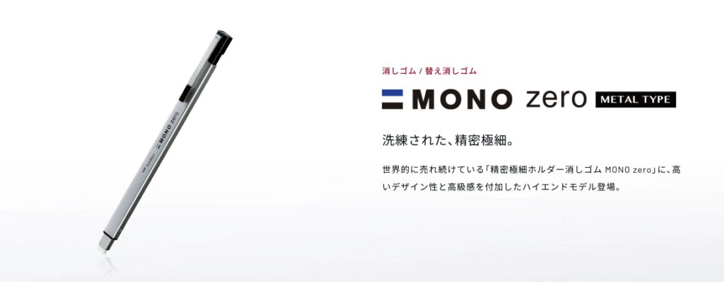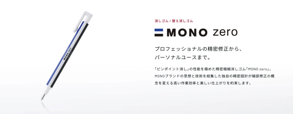 自分が愛用しているmono zeroはペンタイプのピンポイント消しだ。